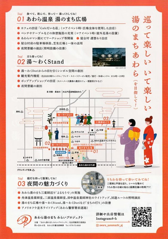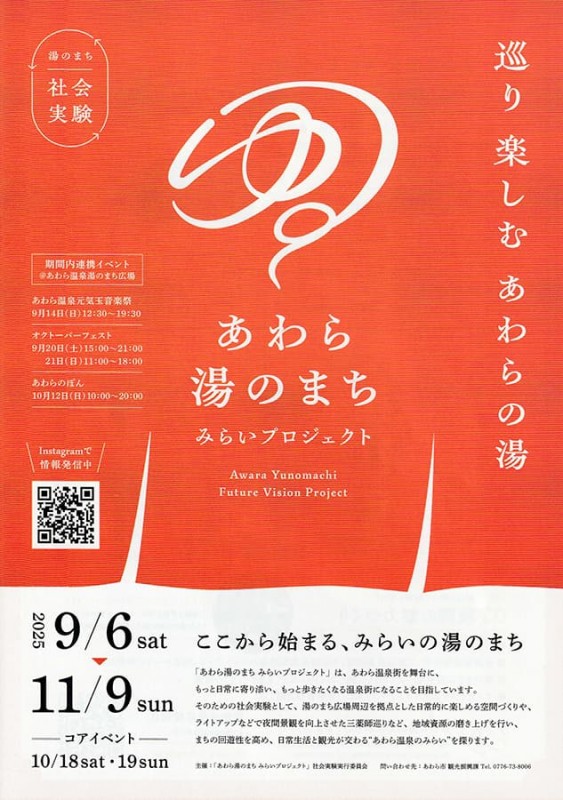 芦原温泉(あわら温泉)では9/6(土)~11/9(日)まで、「あわら湯のまち みらいプロジェクト」と題して社会実験を行っています。