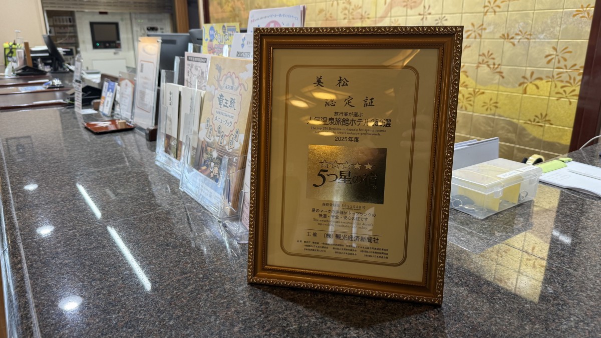 このたび、北陸 福井 あわら温泉 美松は、株式会社観光経済新聞社が主催する2025年度の「人気温泉旅館ホテル250選」と「5つ星の宿®️」 を受賞いたしました。